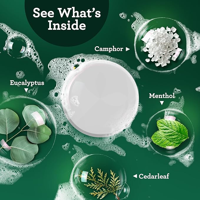- INDULGE IN WELLNESS: Our shower steamers are infused with 100% pure menthol, eucalyptus, camphor, and cedarwood essential oils, delivering an invigorating aroma that soothes your senses and provides ultimate relaxation through aromatherapy.