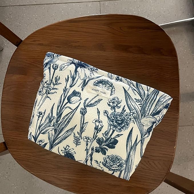 Wudygirl Cute Makeup Bag for Women - Travel Cosmetic Bag with Zipper Makeup Pouch Floral Make up Organizer Handbag Aesthetic (Porcelain Blue)