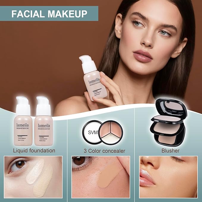 - 【Fashion Appearance】 Makeup Set is contains all the necessary and basic makeup tools that every girls need. High quality ingredients with silky shine color, easy to blend and apply, creating clear and brilliant three-dimensional face makeup finish. Suitable for a variety of skin tones.