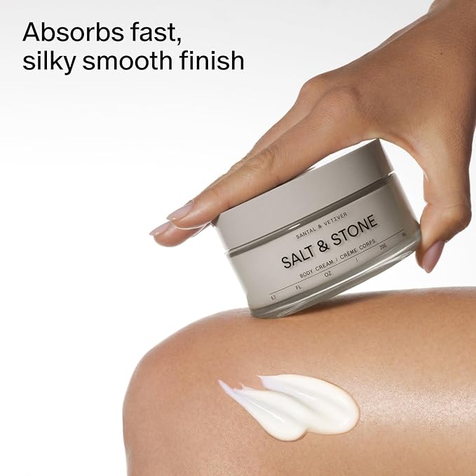 Salt & Stone Body Cream – Santal & Vetiver | Hydrating Formula with Seaweed Extracts, Spirulina & Squalane | Deep Hydration, Skin Barrier Support & Healthy Glow | for all Skin Types (6.7 fl oz)