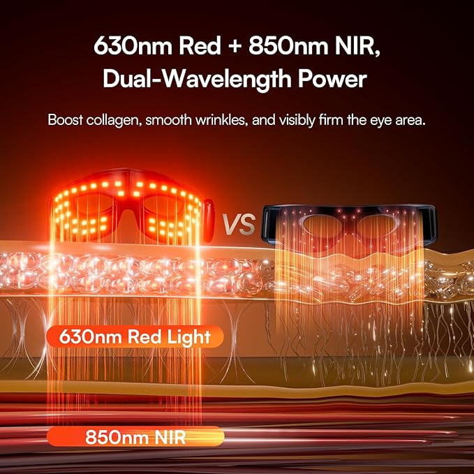 - Dual-Wavelength for Deep Renewal - Go beyond the surface with 630nm red and 850nm NIR light. This powerful under eye red light therapy combo boosts collagen, smooths wrinkles, and firms skin. It’s science-driven skin care that works from within to give you visibly renewed eyes.