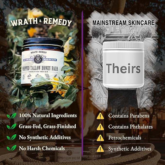 - ๐ DEEP-HYDRATING UNWHIPPED TALLOW BALM: Our 2 OZ unwhipped formula is ideal as a tallow face moisturizer and doubles as a soothing honey tallow balm for face, lips, elbows, and eczema patches. Denser and more concentrated than whipped balms, itโs solid in the jar but melts effortlessly with your skinโs warmthโdelivering long-lasting hydration for dry, sensitive, and rough skin. โ No phthalates, parabens, or synthetic additives