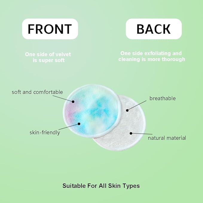 - GENTLE FOR MOST SENSITIVE SKIN-This reusable round pads fit for most dry, sensitive, oily skin, and delicate eye area, not only women can use it, also men and baby. Your skin will feel clean and smooth. It can be reusable many times wash by hands or wash by machine with included laundry bag. To dry the pads, simply lay flat and air dry on a towel