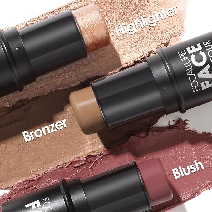 - 3-in-1 Contour Kit for Effortless Glow : FOCALLURE’s cream contour stick set includes highlighter, bronzer & blush for a complete face sculpting routine. Achieve a fresh-faced, luminous look with buildable, blendable shades that enhance your natural features—perfect for quick, on-the-go makeup.