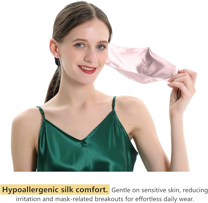 - ✅Hypoallergenic & OEKO-TEX Certified: Crafted from pure silk, this gentle facemask is perfect for sensitive scalps. Free from harmful chemicals, it offers a safe, breathable, and soothing sleep experience.
