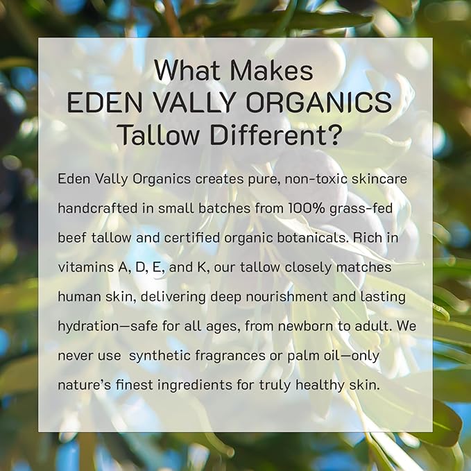 - Special Feature : 100% Grass-Fed Beef Tallow: Sourced from premium grass-fed cattle, rich in vitamins A, D, E, and K, mimicking the skin’s natural barrier for superior hydration and repair compared to conventional moisturizers., Antibacterial, Aromatherapy, Homeopathic, Hypoallergenic 100% Grass-Fed Beef Tallow: Sourced from premium grass-fed cattle, rich in vitamins A, D, E, and K, mimicking the skin’s natural barrier for superior hydration and repair compared to conventional moisturizers., Antibacterial… See more