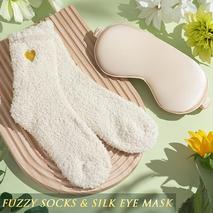- COZY CARE PACKAGE FOR WOMEN: Skin-friendly & incredibly soft, the lightweight fuzzy socks in birthday Christmas Mothers Day gifts for women mom friends sister wife girlfriend her are warm and super comfy, enveloping her feet in cloud-like warmth. Along with a silk eye mask for her good sleep and a flower hair clip for her unique hairstyle, this self care get well gifts for women after surgery sympathy gift baskets sunflower sending hug gifts shows your heartfelt gesture of love & support for her