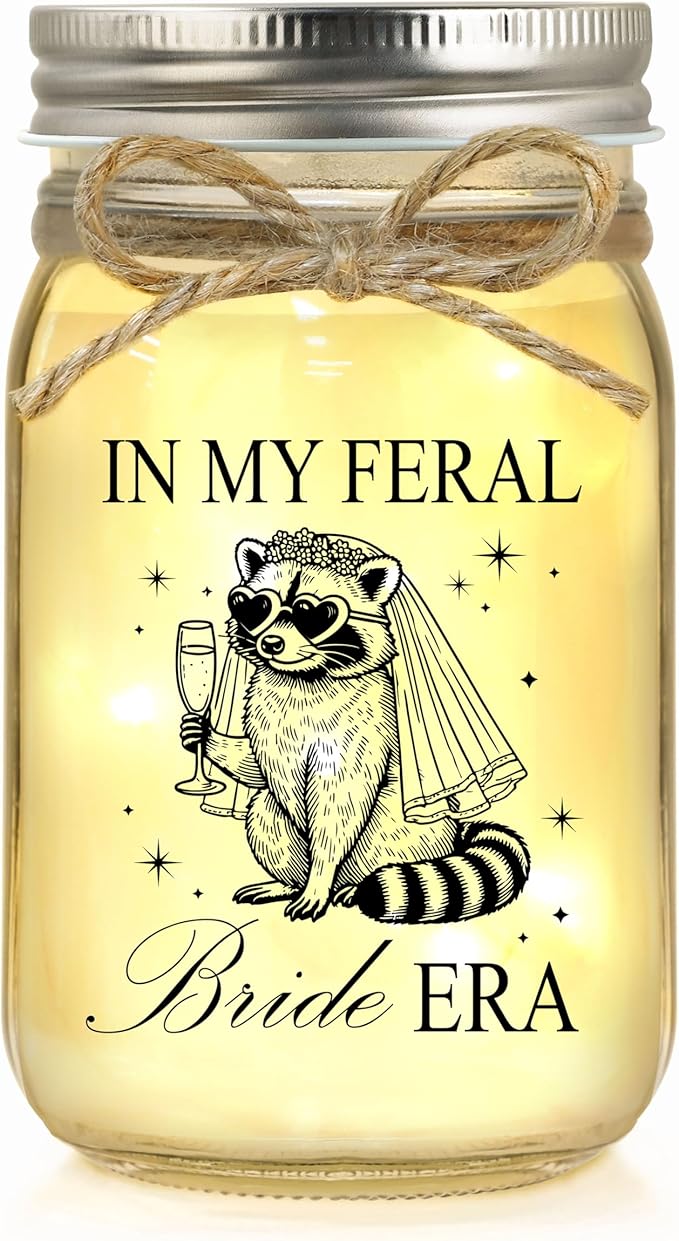 - BRIDE GIFTS: The perfect engagement gift for the bride to be! Bring laughs to the bride squad with this “Feral Raccoon Bride”, a playful and cozy gift for the bride-to-be. Give a gift that a special Bride in your life will love! This durable, high-quality Marson Jar Light makes a meaningful gift that is sure to impress!