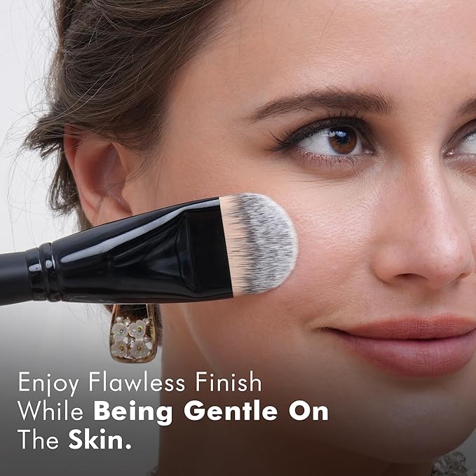 - 【Premium Synthetic Bristles】Crafted with ultra-soft,cruelty-free premium synthetic bristles,this brush set offers a luxurious feel that's gentle on all skin types.These fibers excel at picking up and blending powders,creams,and liquids seamlessly,creating flawless transitions without harsh lines.