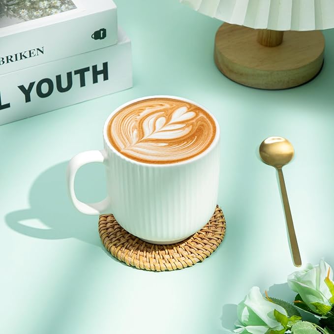 - 【Cozy Moments, One Cup at a Time】Every sip brings comfort with this elegant ceramic mug, featuring a smooth glaze and ergonomic handle for a cozy grip. Paired with a bamboo coaster and stainless steel spoon, it’s perfect for tea, coffee, or cocoa. Durable, heat-resistant, and beautifully designed — the perfect companion for slow mornings, quiet evenings, or recovery days.