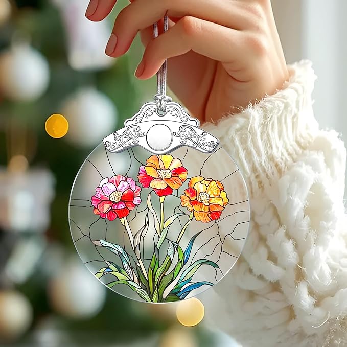 Christmas Ornaments: Stained Glass-Style January Birth Flower Ornament โ Christmas Tree Decorations, Holiday Party Gifts, Mother's Day & Birthday Gifts for Women, Mom & Grandma | Birth Flower Gift