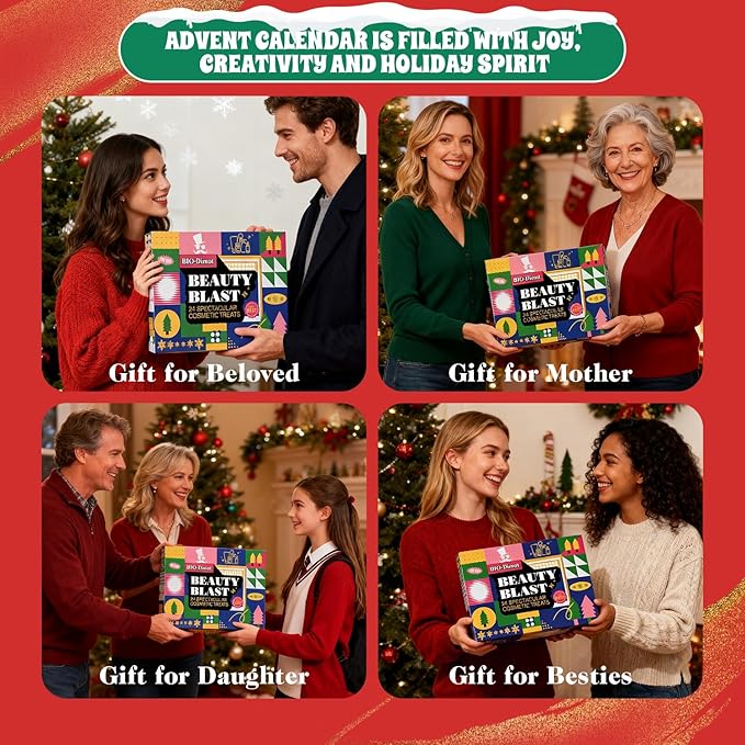 - 【Thoughtful Christmas Gift Set】 A beautifully designed, collectible color box makes this the perfect gift for all ages. This makeup advent calendar is the ideal present for daughters, friends, sisters, or loved ones on special occasions like Christmas, birthdays, anniversaries, Valentine's Day, Thanksgiving, and Mother's Day. Bring them joy with this delightful, surprise-filled beauty box.